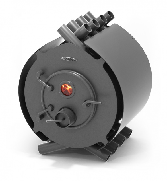 Печь состоит из набора одинаковых конвекционных труб, окружающих топочную камеру. Холодный воздух, проходя по горячим трубам, нагретые излучением от горящего топлива, создает естественную конвекцию, благодаря чему происходит быстрый нагрев воздуха и его плавное распределение по всему объему помещения.